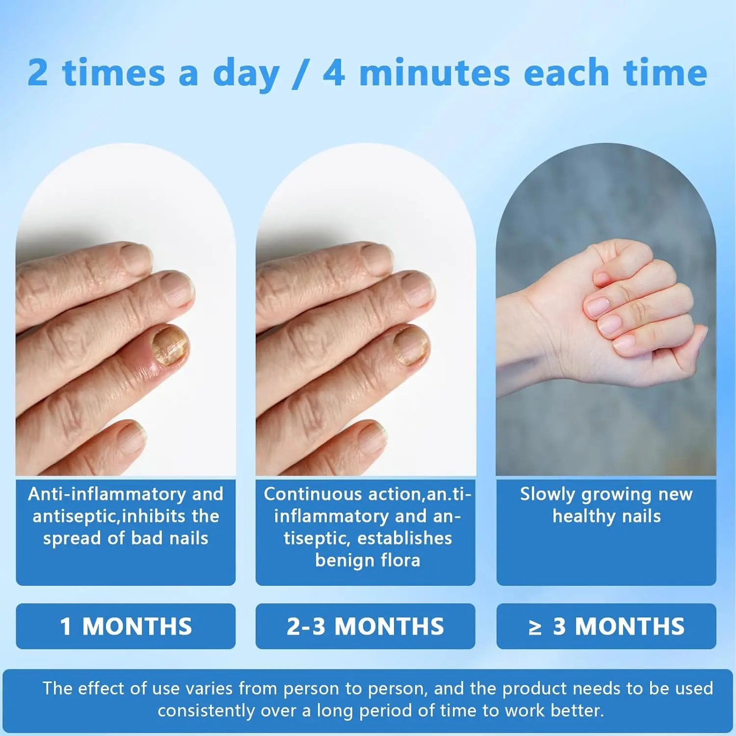 • 🔵【Multiple Technologies for Enhanced Results】Equipped with a powerful 905nm pulse (fungal-eliminate) and three 470nm blue light LED bulbs(sterilize), this device ensures comprehensive coverage and effective. he combination of these technologies guarantees that no corner is left, maximizing the chances of successful fungal.